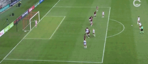 第15分钟,亚当斯传中,肖内西头球破门,纽卡斯尔喷气机1-0西悉尼流浪者