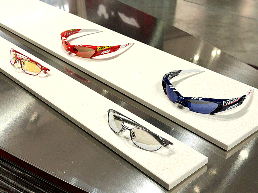 往里走能看到这次联名产品的陈列,它们属于 GENTLE MONSTER 2026 Circuit 系列(系列有 8 款眼镜,其中 3 款是带有“米奇和朋友们”的 F1 独家设计款)。
