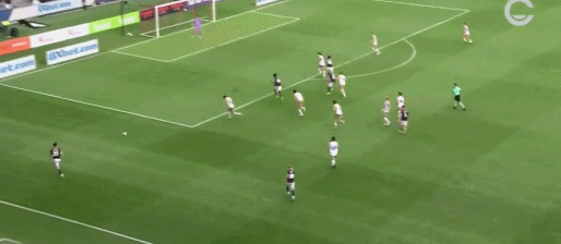 第15分钟,亚当斯传中,肖内西头球破门,纽卡斯尔喷气机1-0西悉尼流浪者