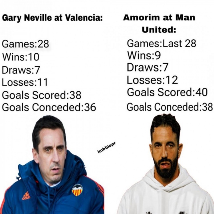 内维尔乐不出……因为自己执教纪录也差的离谱……